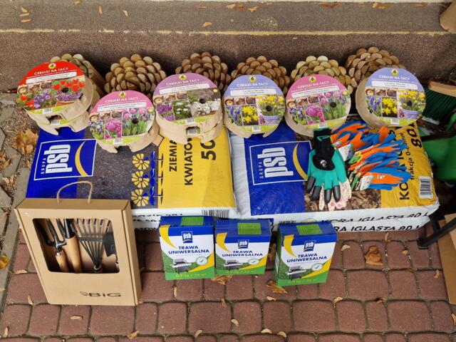 Firma A.R. Skład, właściciel marketu Mrówka w Górze Kalwarii, przekazała przedszkolu niezbędne materiały, takie jak cebulki, ziemię, korę, trawę, drewniane płotki oraz narzędzia i rękawiczki dla małych ogrodników.