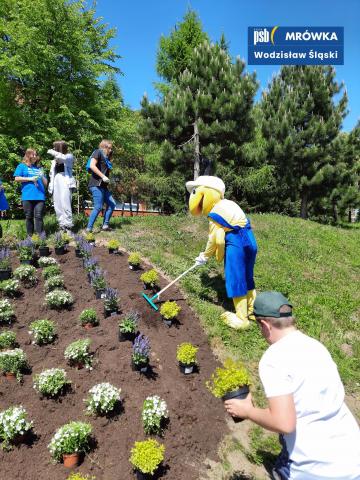 Sklep PSB Mrówka w Wodzisławiu Śląskim przeprowadził akcję "Wiosna z Mrówką". Podczas której, pracowita Mrówka wspólnie ze Szkołą Podstawową nr 3 im. Jana Pawła II, stworzyli na placu z kwiatów literę M (M jak Mrówka).