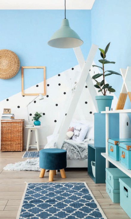 Wszystkie odcienie koloru niebieskiego niosą ze sobą ogromną dozę świeżości. Kojarzą się z wodą, niebem, chłodem, otwartą przestrzenią. W niebieskich wnętrzach można wziąć głęboki oddech, wyciszyć się, zrelaksować. To tonacja, która budzi również poczucie bezpieczeństwa, tak niezbędne nam dzisiaj.