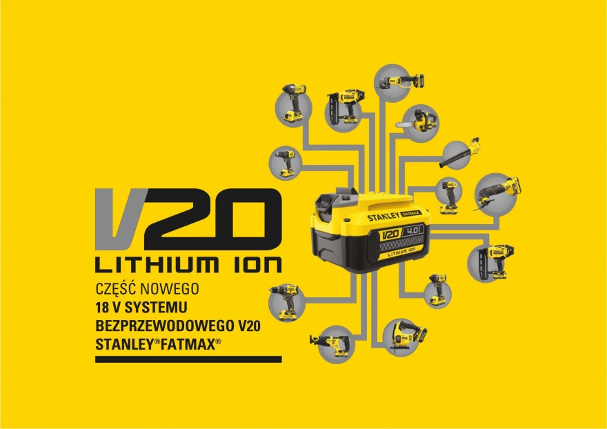 Dzisiaj marka STANLEY wprowadza nową generację swoich elektronarzędzi: bezprzewodowy system 18V STANLEY FATMAX V20. Wykorzystując szeroką gamę wysokiej jakości, niezawodnych produktów, od wiertarek, szlifierek i pilarek, po lampy i odkurzacze bezprzewodowe, profesjonaliści mogą teraz korzystać z prawdziwego systemu elektronarzędzi oferującego wybór akumulatorów całkowicie zgodnych z wszystkimi narzędziami z systemu.